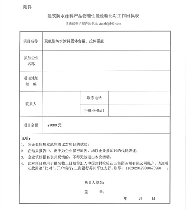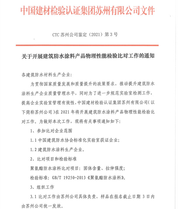 關于開展建筑防水涂料產品物理性能檢驗比對工作的通知