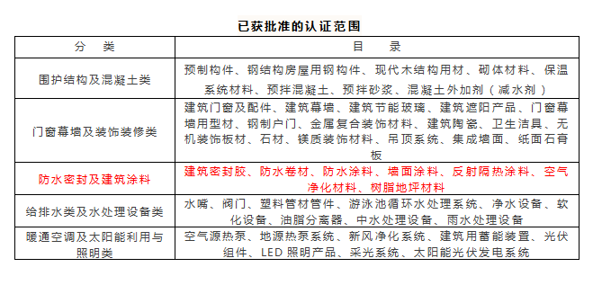關于正式受理防水與密封材料“綠色建材產品”認證申請的通知
