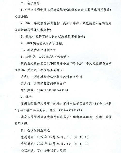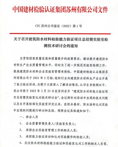 關于召開建筑防水材料檢驗能力驗證項目總結暨實驗室檢測技術研討會的通知