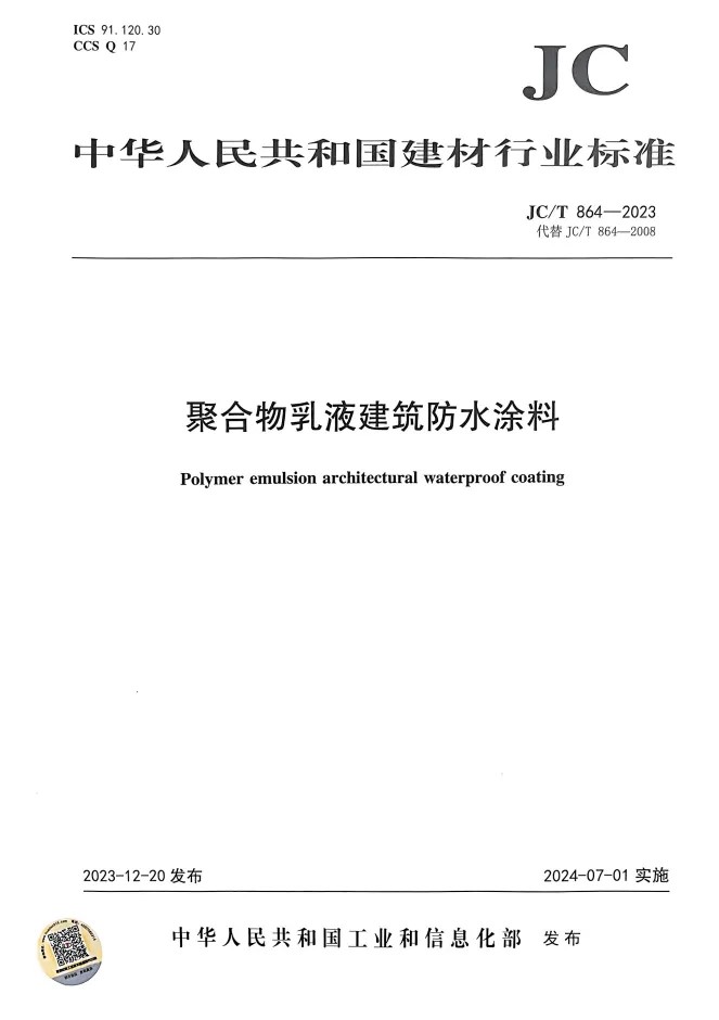 JC/T 864-2023《聚合物乳液建筑防水涂料》