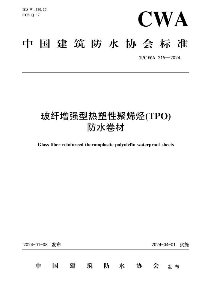 T/CWA 215-2024《玻纖增強型熱塑性聚烯烴(TPO)防水卷材》