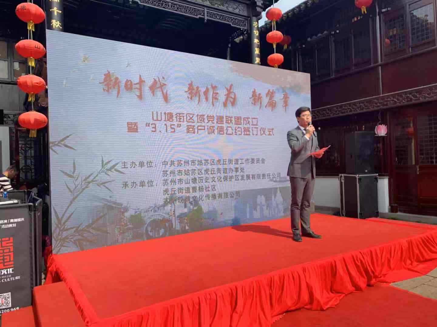 今天是315國際消費者權益日,國檢集團蘇州公司黨支部參加了虎丘街道黨工委組織的系列活動,參與了黨建聯盟的成立并見證了商戶誠信簽約儀式。