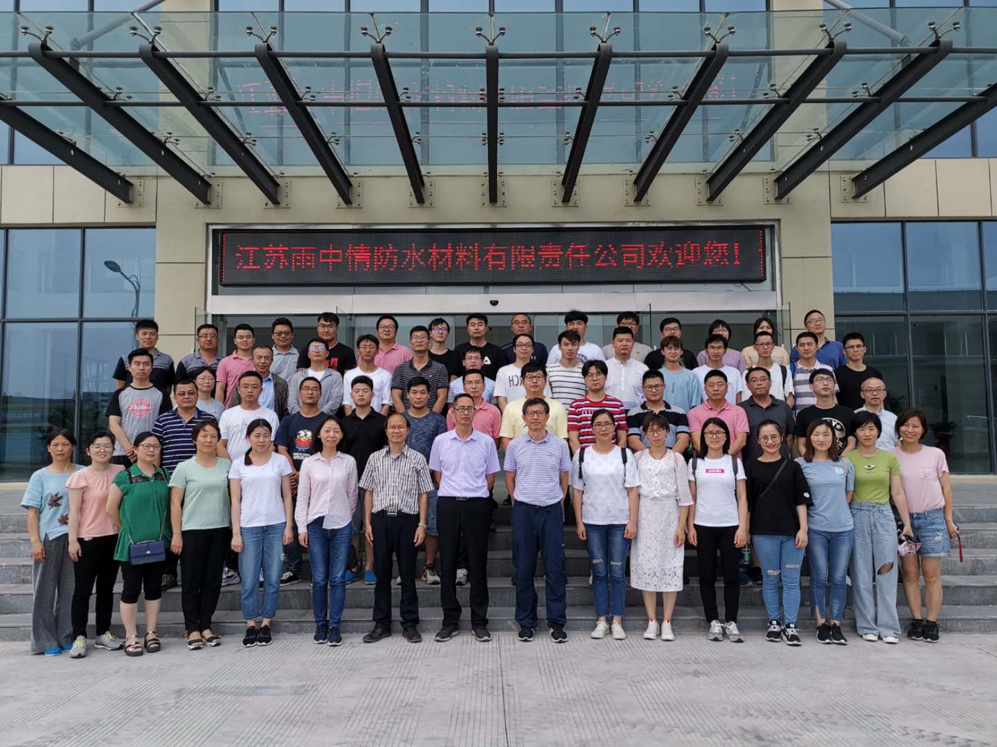 7月6日,蘇州公司總經理朱德明、副總經理朱志遠、王瀾帶領公司骨干員工來到雨中情防水技術集團泰州生產基地,開展考察和技術交流活動。