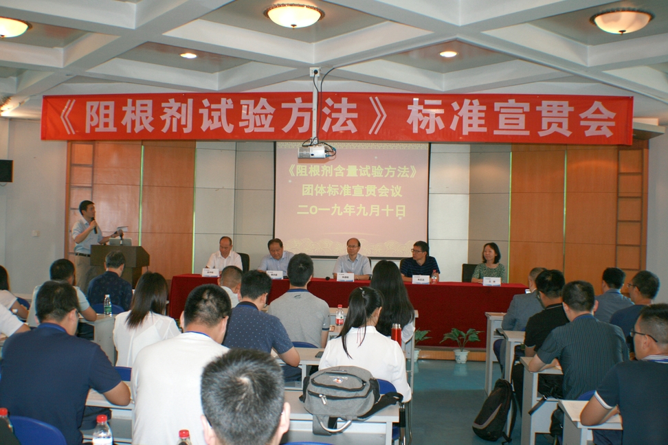 2019年9月10日教師節,國檢集團蘇州公司在蘇州市廣濟路284號蘇州防水研究院組織召開了團體標準T/CBMF 49—2019/T/CWA 301—2019《瀝青基耐根穿刺防水卷材阻根劑含量試驗方法》宣貫會。出席會議的領導和專家有國檢集團蘇州公司朱德明總經理、朱志遠副總經理、王瀾副總經理;中國建筑防水協會羨永彪副會長、尚華勝副秘書長;朗盛化學顧其峰、宋小明;思揚貿易公司馬戰生,以及阻根劑產品的用戶,耐根穿刺防水卷材生產企業代表等共60余人。
