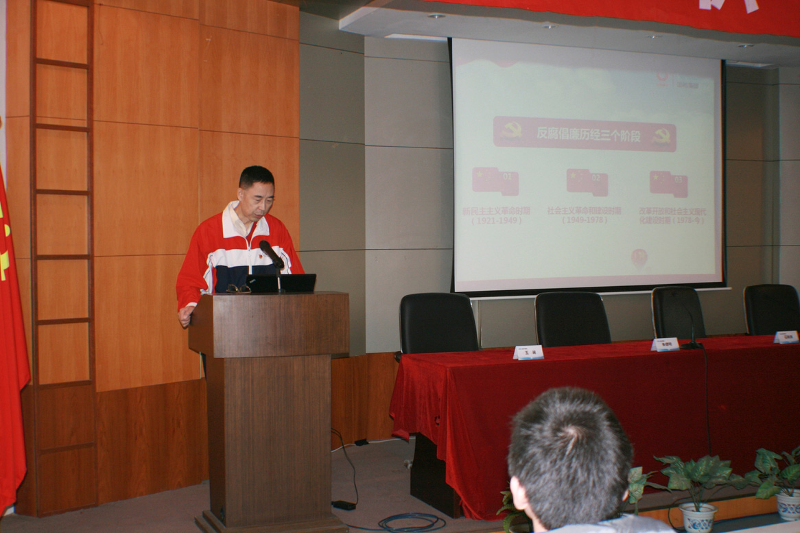 石新勇書記以“中國共產黨反腐倡廉歷程”為主題做了重要講話,他從反腐倡廉三個階段的演變歷程和建設過程,到十八大以來國企反腐情況。體現了新一代領導人從嚴治黨的決心和監管體系的進一步健全。總結了從嚴治黨的五個“必須”和“六項任務”以及領導干部“四個必須”、“五個要”等內容,最后他對習近平總書記關于廉政建設的最新指示進行總結,希望廣大黨員領導干部自覺增強紀律意識,自覺接受紀律約束,真正把紀律挺在前面。 |