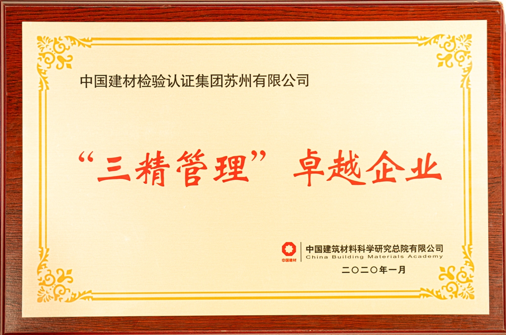 近日,從北京傳來喜訊,蘇州公司榮獲中國(guó)建筑材料科學(xué)研究總院有限公司“三精管理”卓越企業(yè)榮譽(yù)稱號(hào)。