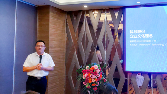 本次會(huì)議贊助單位科順?lè)浪萍脊煞萦邢薰镜拇須W陽(yáng)友華介紹了科順公司概況及企業(yè)文件建設(shè)發(fā)展情況。