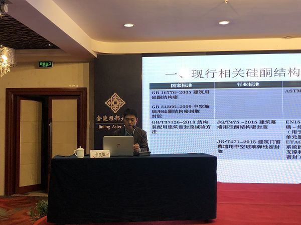 19日,中國建材檢驗認證集團蘇州有限公司余奕帆向企業(yè)技術人員代表介紹了GB16776-2002《建筑用硅酮結構密封膠》標準修訂進展情況和《建筑密封膠用色漿》、《建筑密封膠用包裝材料》、《建筑門窗用組角密封膠》等標準的宣貫介紹。
