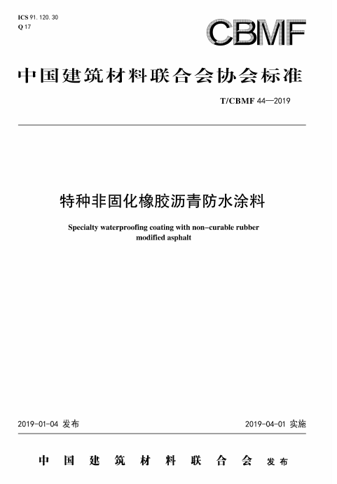 T/CBMF 44-2019《特種非固化橡膠瀝青防水涂料》,負責起草單位:中國建材檢驗認證集團蘇州有限公司、北京東方雨虹防水技術股份有限公司、中國建筑防水協會。特種非固化產品具有高耐熱、低粘度、高性能、高環保等特點,是防水行業的明星產品,可廣泛應用于各類工業和民用建筑防水工程,采用涂卷復合的工法防水可靠性更高,從根本上減少建筑滲漏,具有顯著的社會和經濟效益。團體標準發布后,有利于進一步指導和推進產品的研發和應用,對提升我國建筑防水材料技術水平具有積極意義。