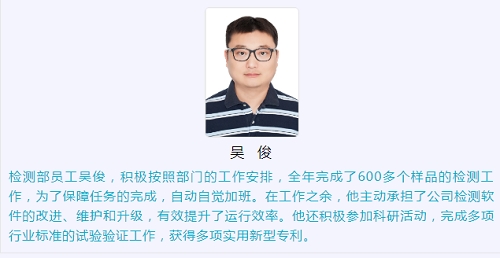 2020年度,國(guó)檢集團(tuán)蘇州公司四名同志在工作中積極進(jìn)取,奮力拼搏,創(chuàng)先爭(zhēng)優(yōu),業(yè)績(jī)突出,受到了集團(tuán)的表彰,他們是公司檢驗(yàn)管理部陳曉華,認(rèn)證鑒定部章丹銘,檢驗(yàn)測(cè)試部李萬(wàn)勇和吳俊。