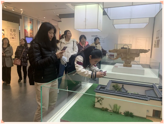 在非遺館內,大家參觀了“光耀歷史的一刻”“市井生活的一天”“歲時節令的一年”“人生禮儀的一生”和“生態蘇州的一城”等主題場景,體驗了蘇州百姓生動的日常生產生活。館中,大家看到昆曲、香山幫傳統建筑營造技藝、宋錦織造、御窯金磚等聯合國、國家級文化遺產代表作近距離展現在眼前,不禁讓人感嘆匠人手作的深厚底蘊。