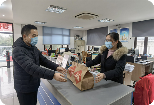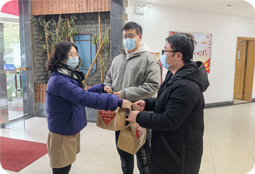 上午,虎丘街道黨工委委員、紀工委書記夏瑋杰和團委書記焦蓉一行,帶著街道領導的關心,來到蘇州公司為外地留蘇員工送上山塘特色愛心禮包,慰問為了抗疫留守蘇州的員工。