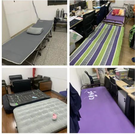 下午16:00,蘇州市召開疫情防控新聞發(fā)布會的同時(shí),蘇州公司食品、后勤等保障物資到位,晚上20:00,員工們自發(fā)將家中的氣墊床、折疊床、帳篷送到,留守員工到位,次日早上7:00,第一批駐守人員圓滿完成演練任務(wù),精神飽滿投入新一天的工作。