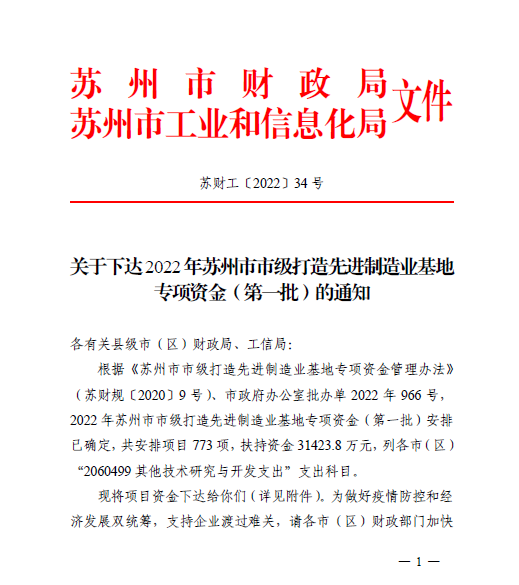 根據(jù)蘇州市財政局、工業(yè)和信息化局聯(lián)合下達的文件(蘇財工[2022]34號),國檢集團蘇州公司成功申報了2021年度蘇州市級打造先進制造業(yè)基地專項資金(中小微企業(yè)公共服務平臺項目),并榮獲補助資金56萬元。蘇州公司也成為姑蘇區(qū)全區(qū)唯一一家成功申報本次平臺類專項資金的單位。