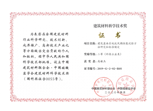 高敏杰作為蘇州公司青年員工代表,繼承和發(fā)揚了國檢集團鉆研、務(wù)實的作風,開展業(yè)務(wù)的同時不忘科研創(chuàng)新。入職以來,他參與制修訂的標準有《聚氯乙烯(PVC)防水卷材》、《單層卷材屋面系統(tǒng)抗風揭試驗方法》、《金屬屋面抗風掀性能檢測方法 第2部分:靜態(tài)壓力法》等;獲得“一種防水卷材的裁切機”等6個發(fā)明和實用新型專利授權(quán);發(fā)表了《中美屋面系統(tǒng)抗風揭對比試驗及結(jié)果分析》、《270°咬合直立鎖邊屋面板系統(tǒng)抗風測試分析》等專業(yè)論文。2017年,他參與的“屋面系統(tǒng)抗風揭性能檢測方法、標準及裝置研究 ”獲中國建材集團技術(shù)進步獎二等獎,2020年,“建筑屋面抗風揭性能試驗方法研究”項目獲得中國建材聯(lián)合會、中國硅酸鹽學會頒發(fā)的建筑材料科學技術(shù)獎“科技公益類”二等獎。他本人在2020年至今獲得“江蘇省第六期333工程重點人才”、“姑蘇區(qū)行動榜樣”、“姑蘇區(qū)高技能重點人才”等多個榮譽稱號。