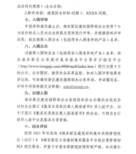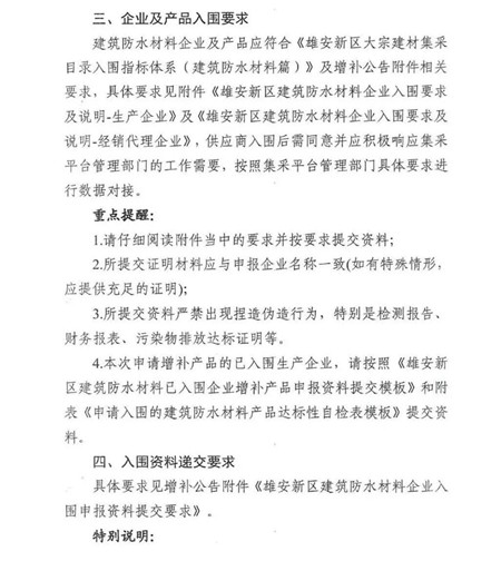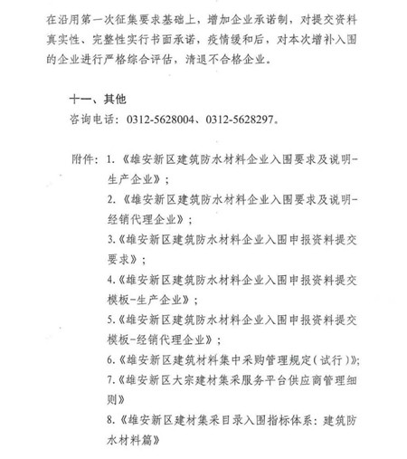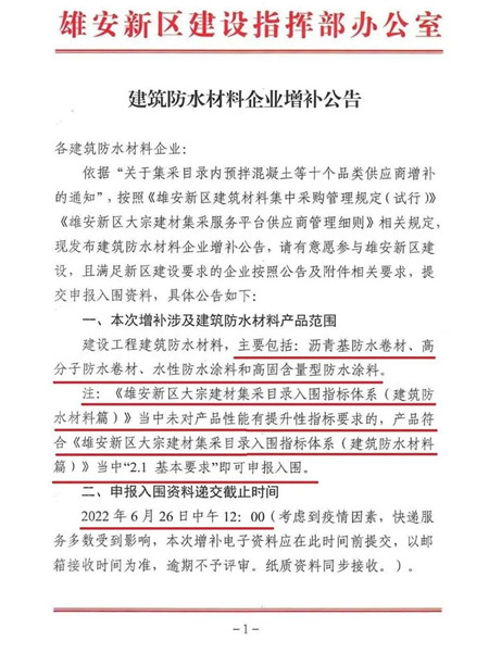 最新消息‖雄安新區(qū)建設(shè)指揮部辦公室發(fā)布建筑防水材料企業(yè)增補(bǔ)公告(含性能指標(biāo))