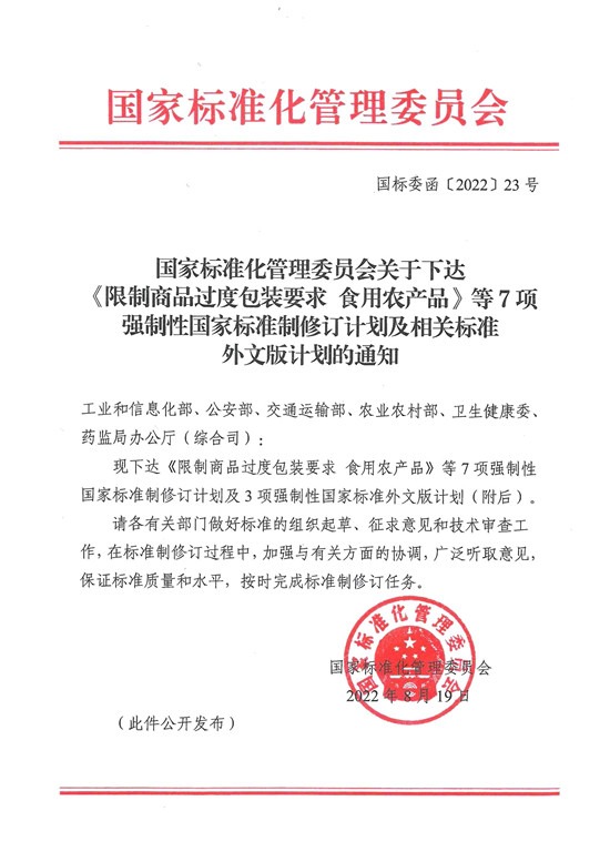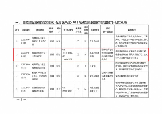 根據(jù)《國家標(biāo)準(zhǔn)化管理委員會關(guān)于下達(dá)<限制商品過度包裝要求 食用農(nóng)產(chǎn)品>等7項(xiàng)強(qiáng)制性國家標(biāo)準(zhǔn)制修訂計(jì)劃及相關(guān)標(biāo)準(zhǔn)外文版計(jì)劃的通知》(國標(biāo)委函[2022]23號),由我公司負(fù)責(zé)起草的建筑防水領(lǐng)域又一項(xiàng)重點(diǎn)標(biāo)準(zhǔn)項(xiàng)目《建筑防水涂料安全技術(shù)規(guī)范》(計(jì)劃號20220872-Q-339)正式獲批立項(xiàng)。