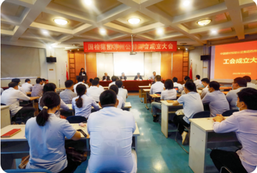 10月27日下午,中國建材檢驗認證集團蘇州有限公司隆重召開工會成立大會。會議由蘇州公司黨支部書記王瀾主持,虎丘街道黨工委副書記、工聯會主席孫大權、姑蘇區總工會基層工作部部長姜達震、屬地社區書記等領導蒞臨指導,朱德明、彭超、王瀾及全體工會會員近七十人參加會議。