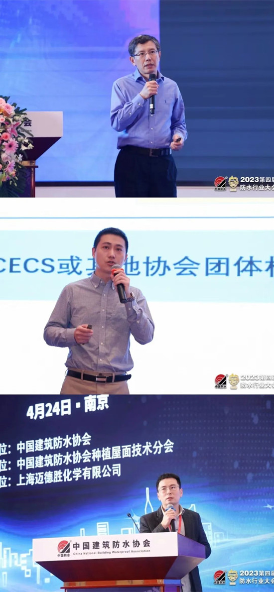 此外,蘇州公司總工朱志遠在第四屆防水行業主論壇做了“建筑防水材料工程要求試驗方法分享”主題演講、在2023年青年企業家分會年會作了“新規下產品創新之路”主題演講;技術部經理余奕帆在第七屆防水涂料技術與市場探討會作了“《硅烷改性聚醚防水涂料》T/CWA 203-2021解讀”主題演講;檢測部副經理高敏杰在第十四屆種植屋面技術與市場研討會作了“防水涂料耐根穿刺試驗影響因素研究”主題演講、在第九屆瓦屋面技術與市場研討會作了“瓦屋面系統風攜雨試驗”主題演講。蘇州公司三位演講者的主題契合了當下行業發展趨勢,內容詳實,技術領先,為企業落地相關項目提供可靠的支撐和依據。