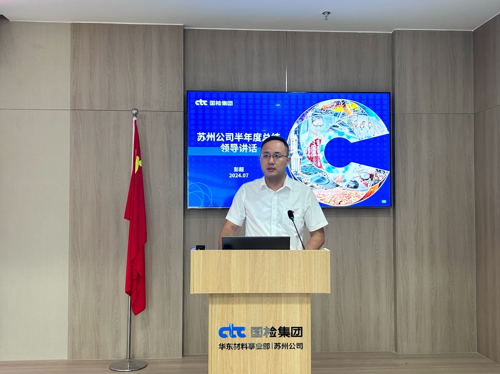 7月15日,國檢集團蘇州公司2024年半年度工作總結大會暨黨建工作總結大會隆重召開,會議由朱曉華主持,國檢集團總經理助理、蘇州公司董事長彭超,蘇州公司總經理翟躍忠,蘇州公司黨支部書記王瀾等領導出席會議。