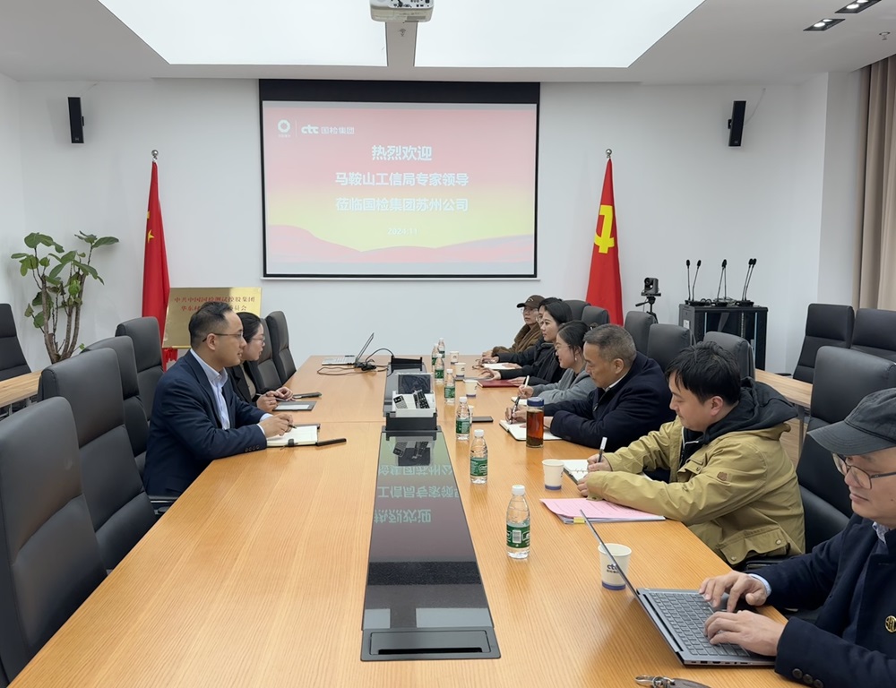 2024年11月27日,馬鞍山市工業(yè)和信息化局魏塘明副局長一行蒞臨國檢集團(tuán)華東材料事業(yè)部(蘇州公司)參觀并指導(dǎo)工作,國檢集團(tuán)總經(jīng)理助理、華東材料事業(yè)部黨委書記、董事長彭超熱情接待。