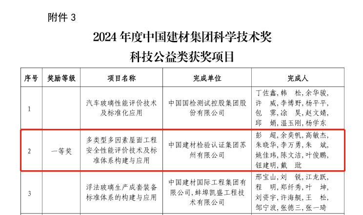 喜報丨國檢集團蘇州公司榮獲中國建材集團科學技術獎(公益類)一等獎