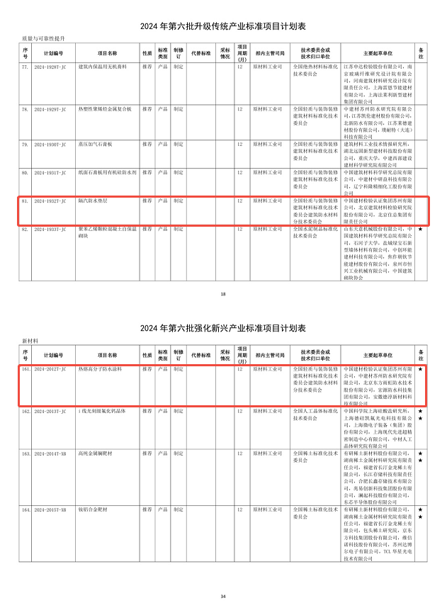 近日,工信部發(fā)布了《2024年第六批行業(yè)標準制修訂計劃的通知》(工信廳科函[2024]503號),由中國建材檢驗認證集團蘇州有限公司負責起草的兩項行業(yè)標準制定項目列入其中,分別是JC/T 《隔汽防水墊層》(計劃號:2024-1932T-JC)和JC/T 《熱熔高分子防水涂料》(計劃號:2024-2012T-JC),歸口單位為全國輕質與裝飾裝修建筑材料標準化技術委員會建筑防水材料分技術委員會,項目周期為12個月。