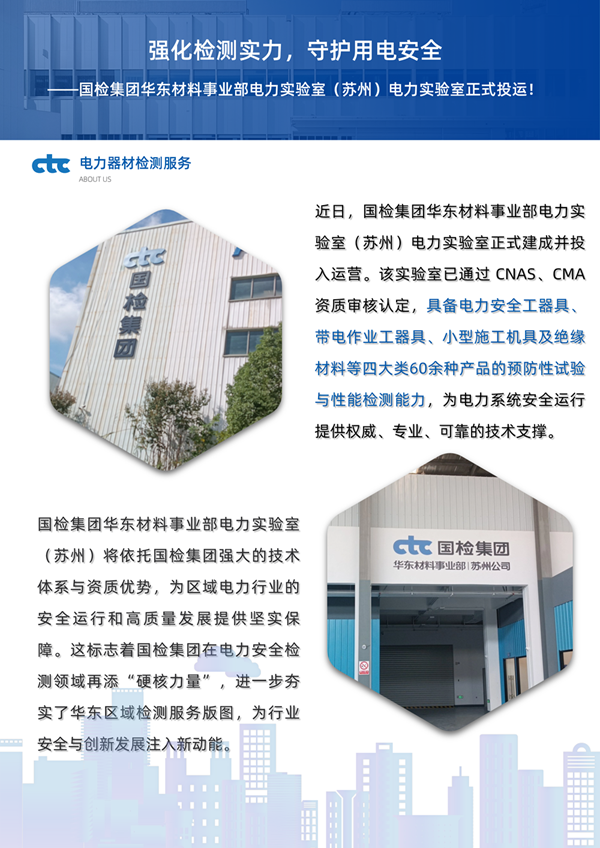 國檢集團(tuán)華東材料事業(yè)部電力實(shí)驗(yàn)室(蘇州)正式投運(yùn)