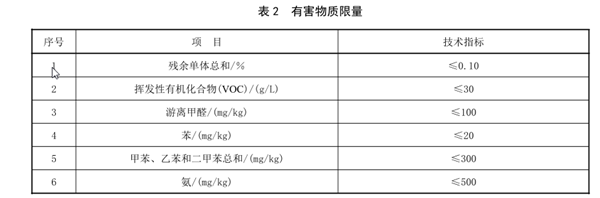 揮發性有機化合物(VOC)按JC1066—2008中5.1規定進行。游離甲醛按GB18582—2008附錄A氣相色譜法規定進行。苯按照GB18582—2008附錄A進行試驗。