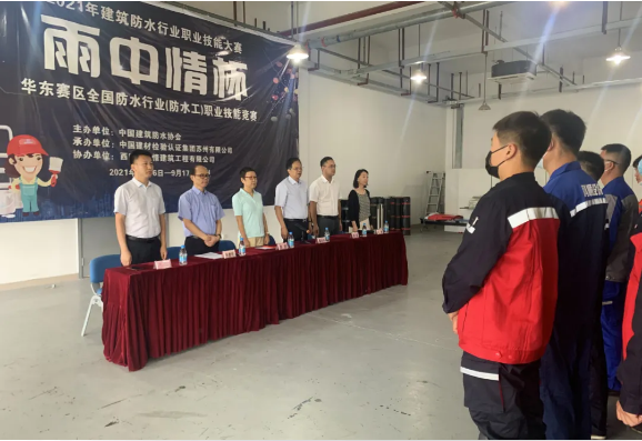 中國建材檢驗認證集團蘇州有限公司董事長朱德明、深圳市防水行業(yè)協(xié)會會長瞿培華、西安雨中情建筑工程有限公司副總經(jīng)理耿融先后致辭。中國建筑防水協(xié)會駐會副會長苗燕致辭并宣布比賽開幕。