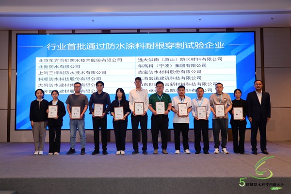會上,彭超、王瀾代表國檢集團蘇州公司為首批通過防水涂料耐根穿刺實驗的企業頒發了合格證書。