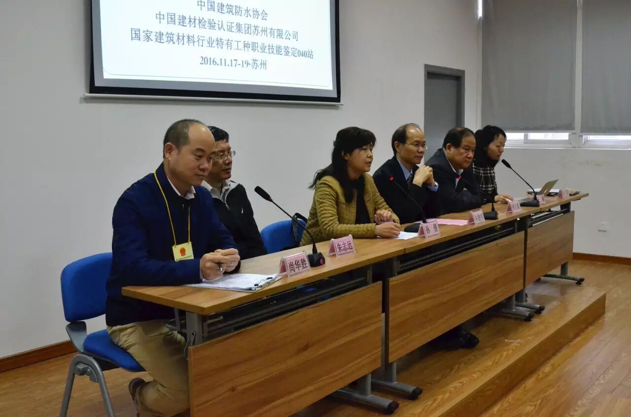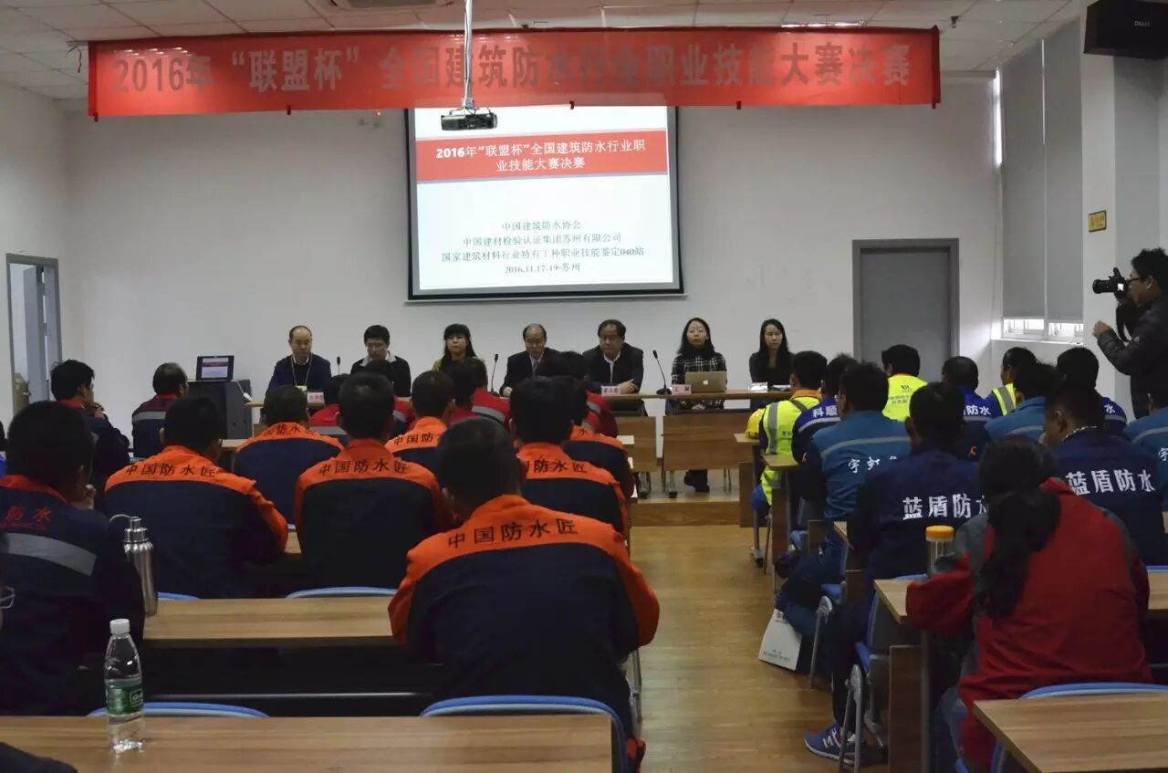 11月17日,2016年“聯盟杯”全國建筑防水行業職業技能大賽決賽開賽儀式在蘇州建筑防水行業職業技能培訓中心舉行。中國建筑材料科學研究總院蘇州防水研究院院長羨永彪,中國建材檢驗認證集團蘇州有限公司總經理朱德明、副總經理朱志遠,國家建材行業職業技能鑒定指導中心主任孫倩,中國建材檢驗認證集團蘇州有限公司總經理助理王瀾,中國建筑防水協會副秘書長尚華勝、行業部主管劉莉以及所有參賽選手出席了開賽儀式。