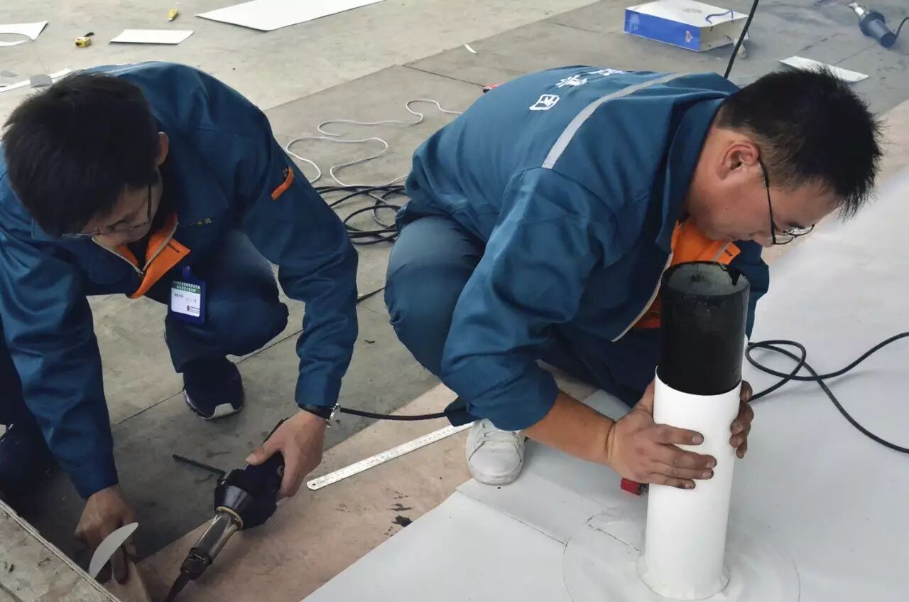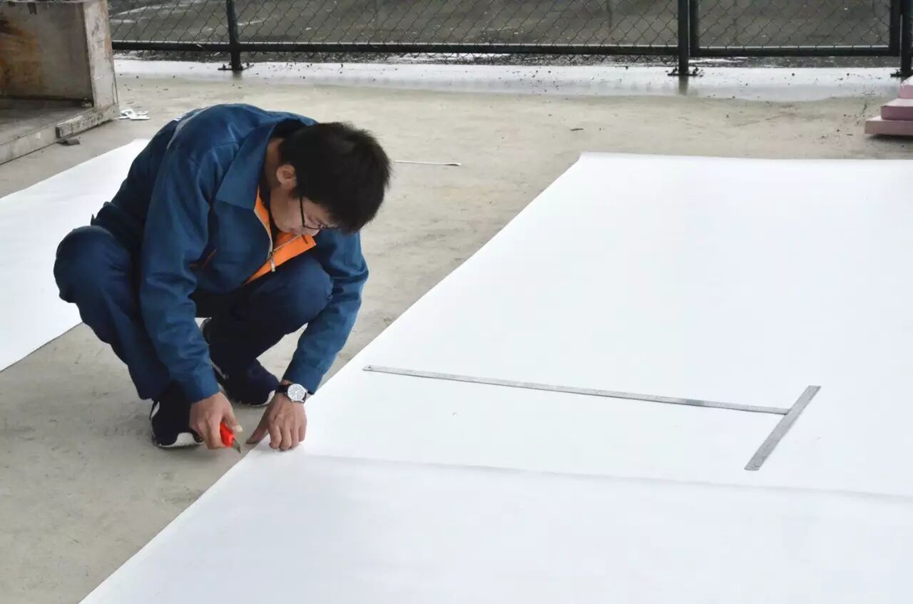 17日為高分子防水卷材實操考試。12名選手分為三組進行比賽,每組4人,考試時間為120分鐘,現場設考評員8人。