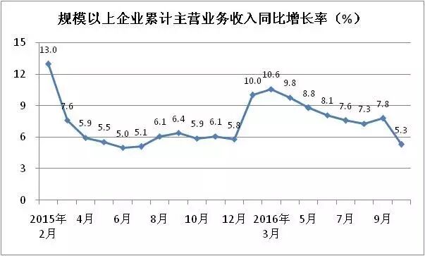 1-10月,規模以上企業的主營業務收入同比增長5.3%,利潤總額同比增長2.5%,銷售利潤率為6.5%,比去年同期下降0.2個百分點。