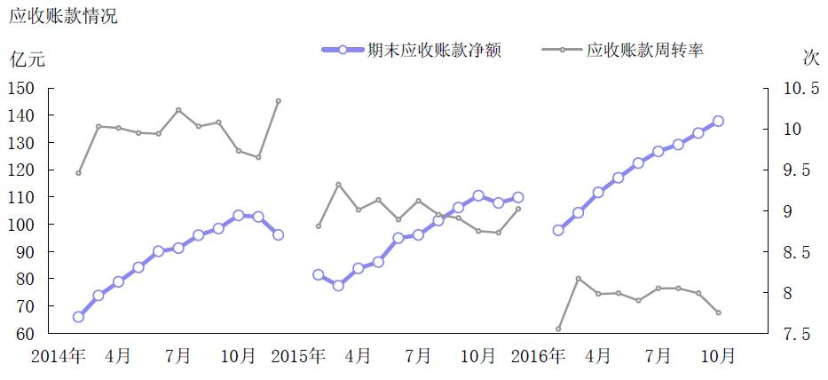 圖8 2016年10月末規模以上企業應收賬款情況