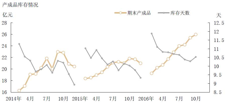 圖9 2016年10月末規模以上企業產成品庫存情況